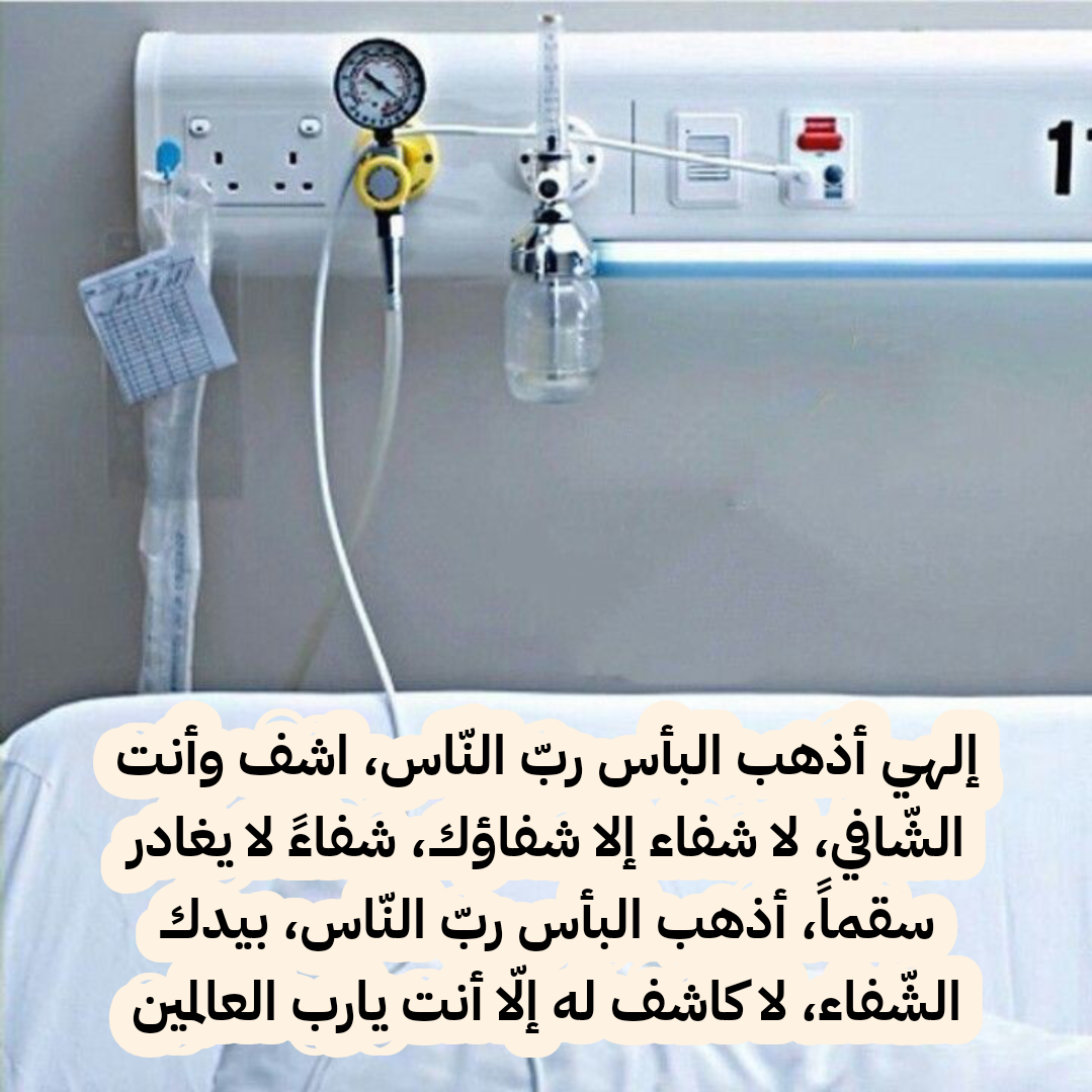 • اللهم يا مُجيب الدعوات، ويا كاشف الكربات، ويا مُنزل الشفاء، اشفِ مرضانا ومرضى المسلمين، وأعد إليهم قوتهم، وأزل عنهم كل ألم، إنك أنت الشافي، لا شفاء إلا شفاؤك، شفاءً لا يغادر سقمًا.