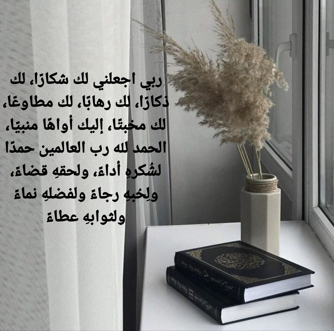 • “الحَمْدُ لِلَّهِ الَّذِي بِنِعْمَتِهِ تَتِمُّ الصّالِحاتُ، نَحْمَدُكَ يا رَبَّنا عَلى ما قَضَيْتَ، ونَشْكُرُكَ عَلى ما أَعْطَيْتَ، ونَسْتَغْفِرُكَ لِما قَصَّرْنا فِيهِ.”.