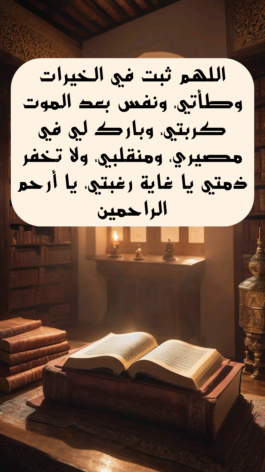 • دعاء لجوء وتوكل:“يَا اللهُ، أَنْتَ الأَوَّلُ فَلَيْسَ قَبْلَكَ شَيْءٌ، وَأَنْتَ الآخِرُ فَلَيْسَ بَعْدَكَ شَيْءٌ، وَأَنْتَ الظَّاهِرُ فَلَيْسَ فَوْقَكَ شَيْءٌ، وَأَنْتَ البَاطِنُ فَلَيْسَ دُونَكَ شَيْءٌ، اقْضِ عَنَّا الدَّيْنَ وَأَغْنِنَا مِنَ الفَقْرِ.”.