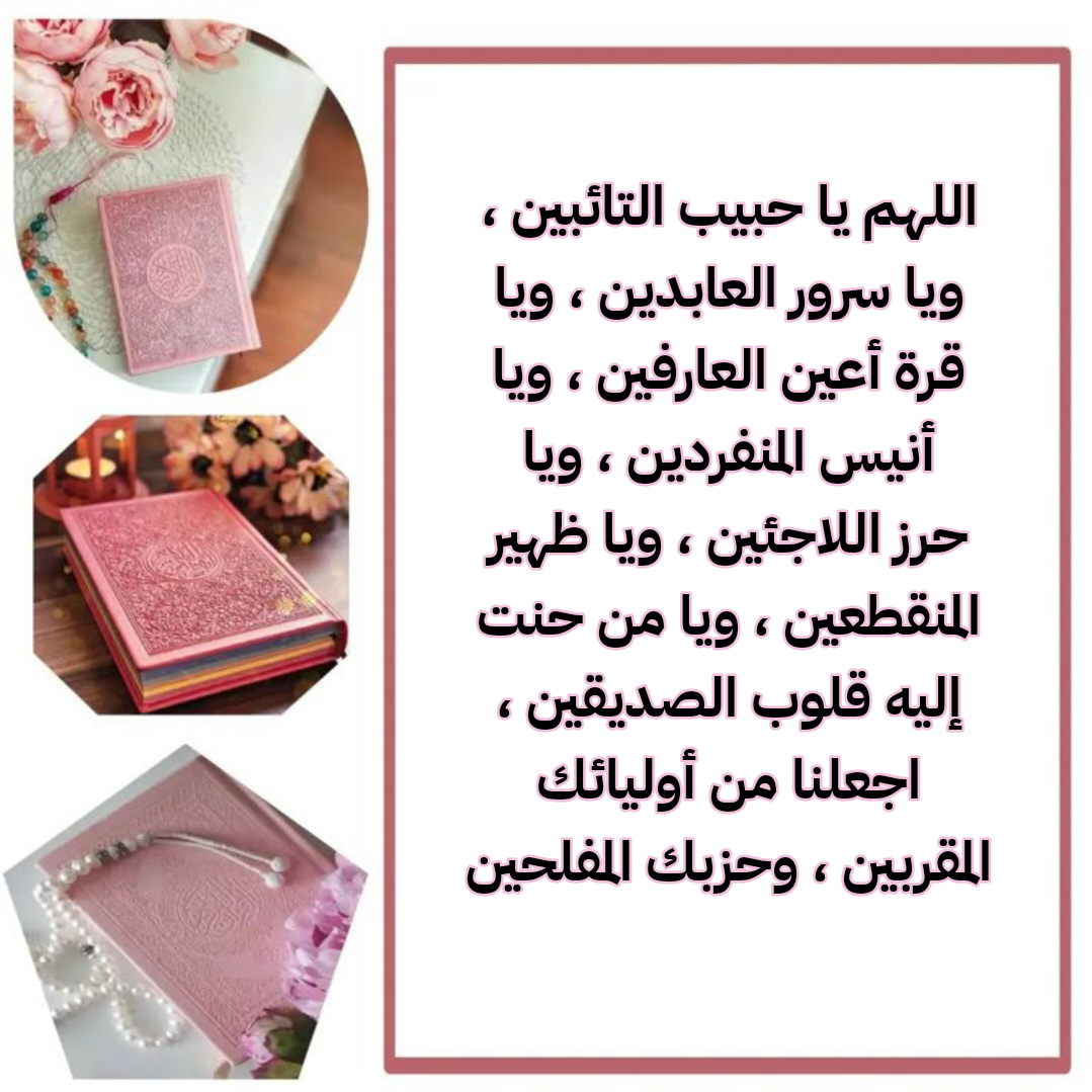 - اللَّهُمَّ ارْحَمْنِي بالقُرْآنِ وَاجْعَلهُ لِي إِمَاماً وَنُوراً وَهُدًى وَرَحْمَةً، اللَّهُمَّ ذَكِّرْنِي مِنْهُ مَا نَسِيتُ وَعَلِّمْنِي مِنْهُ مَا جَهِلْتُ وَارْزُقْنِي تِلاَوَتَهُ آنَاءَ اللَّيْلِ وَأَطْرَافَ النَّهَارِ وَاجْعَلْهُ لِي حُجَّةً يَا رَبَّ الْعَالَمِينَ.