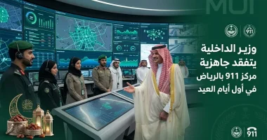 قام صاحب السمو الملكي الأمير عبدالعزيز بن سعود بن نايف بن عبدالعزيز، وزير الداخلية، اليوم الجمعة 20 مارس 2026، بزيارة تفقدية لمقر مركز العمليات الأمنية الموحدة (911) في منطقة الرياض، وذلك لمتابعة سير العمل الميداني والتقني، ومشاركة منسوبي المركز فرحة عيد الفطر المبارك لعام 1447هـ.