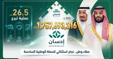 ختام الحملة الوطنية السادسة للعمل الخيري بتبرعات تتجاوز 1.7 مليار ريال ومساهمات استثنائية من القيادة الرشيدة