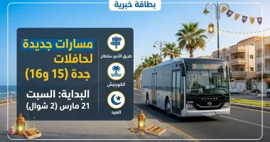 في إطار جهود تطوير منظومة النقل العام وتحسين جودة الحياة في “عروس البحر الأحمر”، أعلنت شركة مواصلات جدة اليوم الأربعاء 18 مارس 2026، عن إطلاق مسارين جديدين (المسار 15 والمسار 16) ضمن شبكة “حافلات جدة” الحديثة، ومن المقرر أن يبدأ التشغيل الفعلي للمسارين اعتباراً من يوم السبت المقبل الموافق 2 شوال 1447 هـ (21 مارس 2026)، تزامناً مع ثاني أيام عيد الفطر المبارك، لخدمة السكان والزوار في المناطق الحيوية والكورنيش.