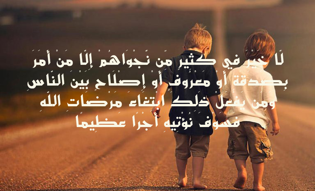 “لَّا خَيْرَ فِي كَثِيرٍ مِّن نَّجْوَاهُمْ إِلَّا مَنْ أَمَرَ بِصَدَقَةٍ أَوْ مَعْرُوفٍ أَوْ إِصْلَاحٍ بَيْنَ النَّاسِ ۚ وَمَن يَفْعَلْ ذَٰلِكَ ابْتِغَاءَ مَرْضَاتِ اللَّهِ فَسَوْفَ نُؤْتِيهِ أَجْرًا عَظِيمًا” [النساء: 114]