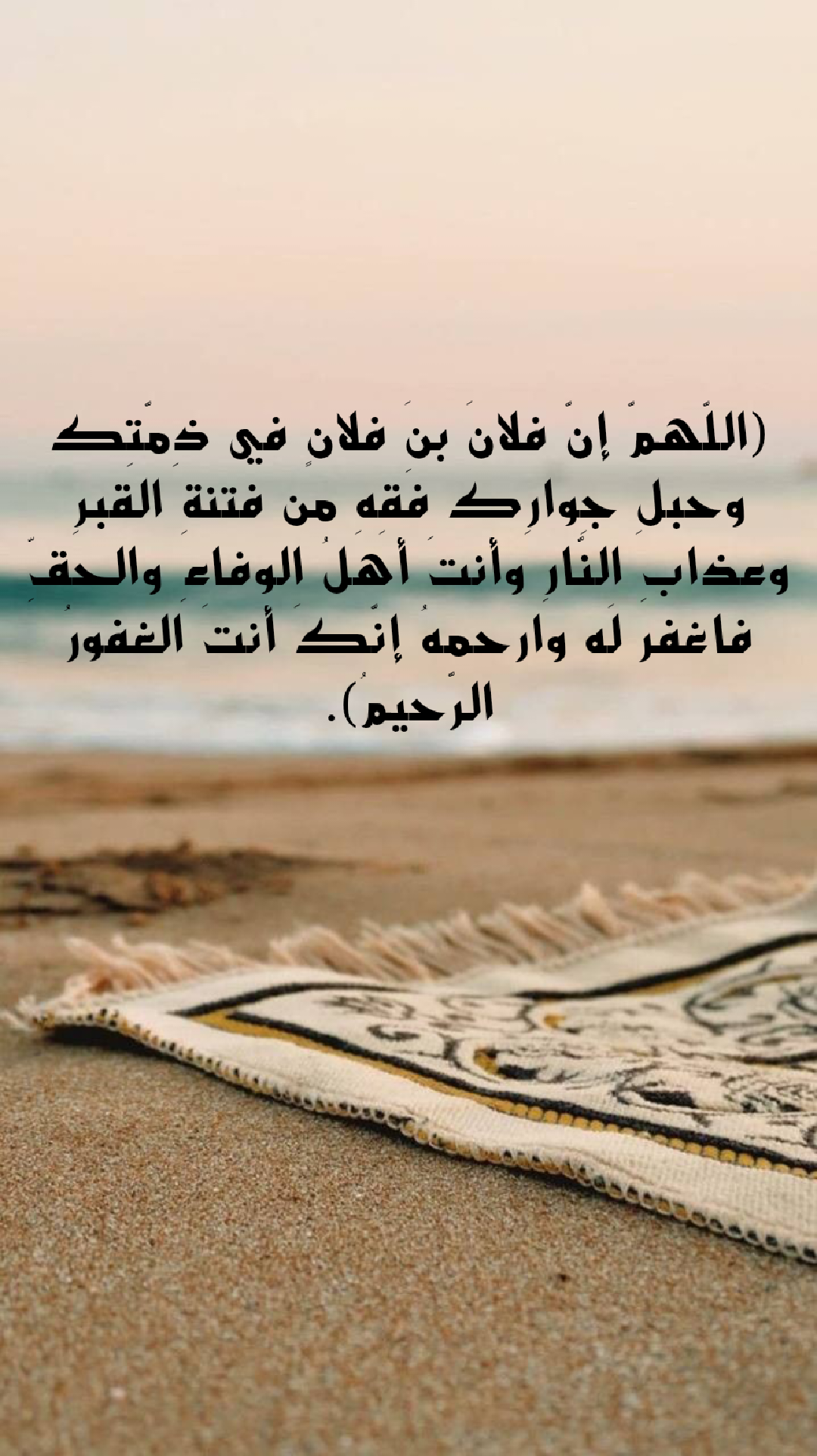 - يا رب، لقد كان عبدك يشهد أن لا إله إلا أنت وأن محمدًا عبدك ورسولك وأنت أعلم به، اللهم ثبته عند السؤال واجعل كتابه في عليين.