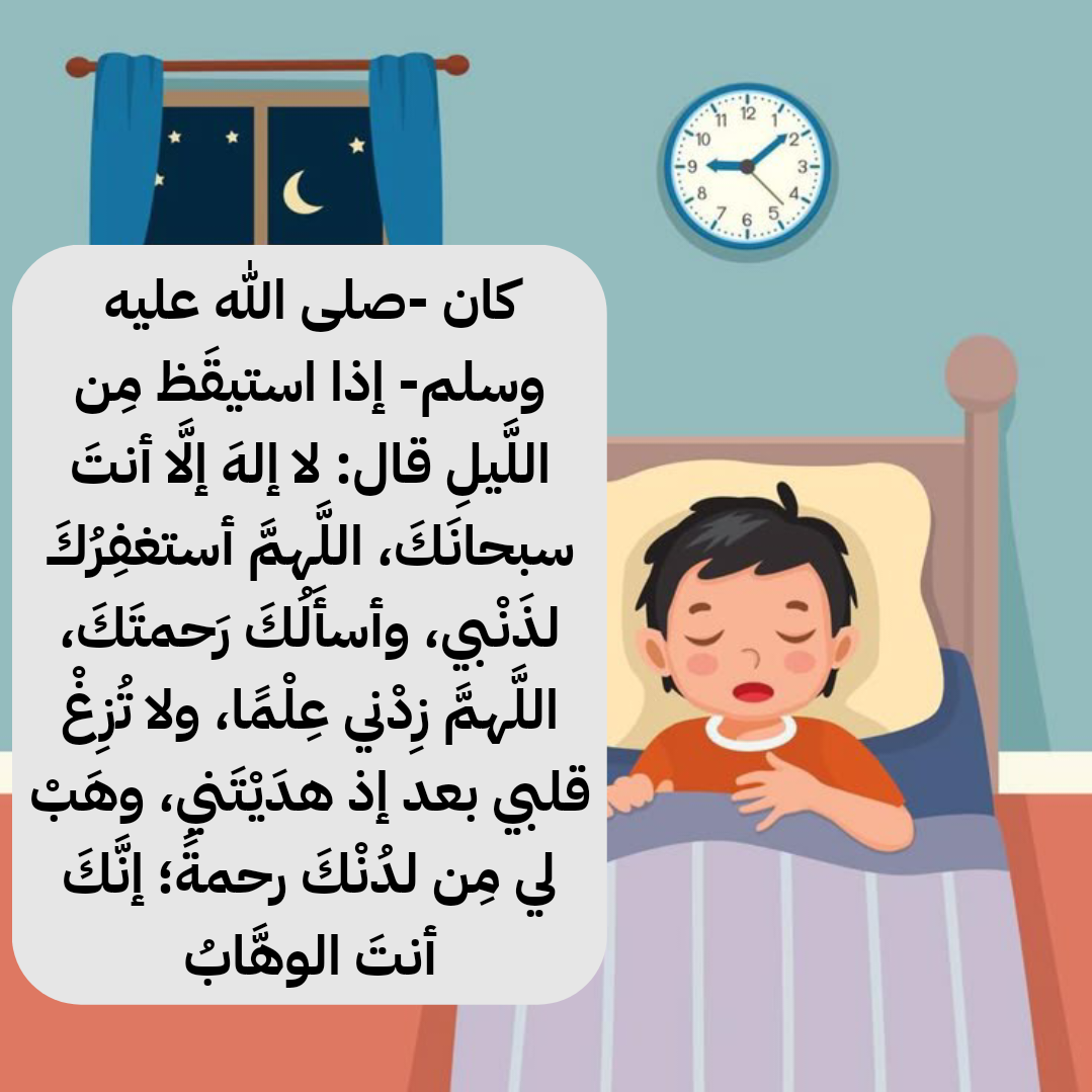 وعندما يستيقظ من نومه، يُسن للمسلم أن يقول ما ثبت عن النبي صلى الله عليه وسلم: