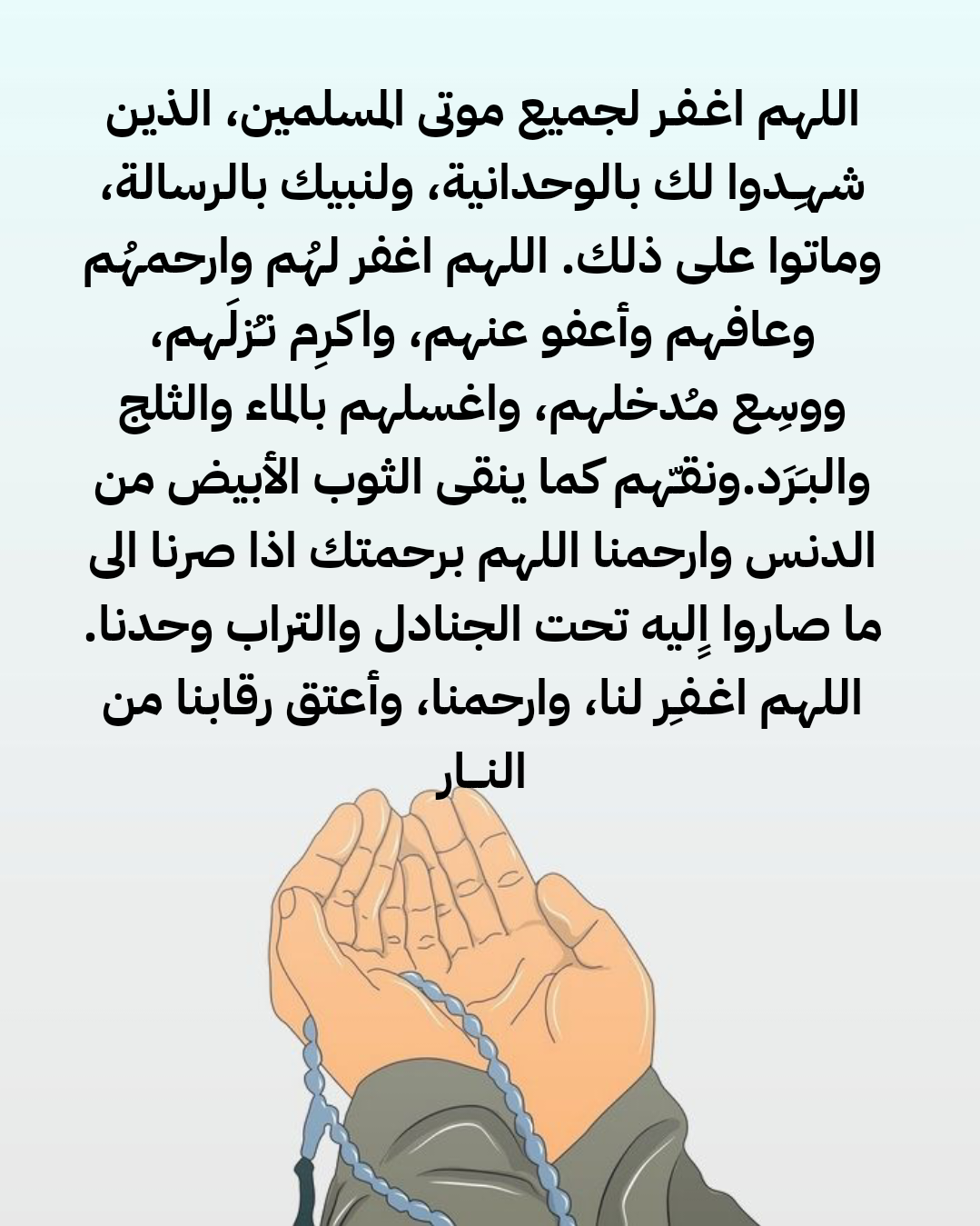 “رَبَّنَا اغْفِرْ لَنَا وَلِإِخْوَانِنَا الَّذِينَ سَبَقُونَا بِالْإِيمَانِ وَلَا تَجْعَلْ فِي قُلُوبِنَا غِلًّا لِّلَّذِينَ آمَنُوا رَبَّنَا إِنَّكَ رَءُوفٌ رَّحِيمٌ”