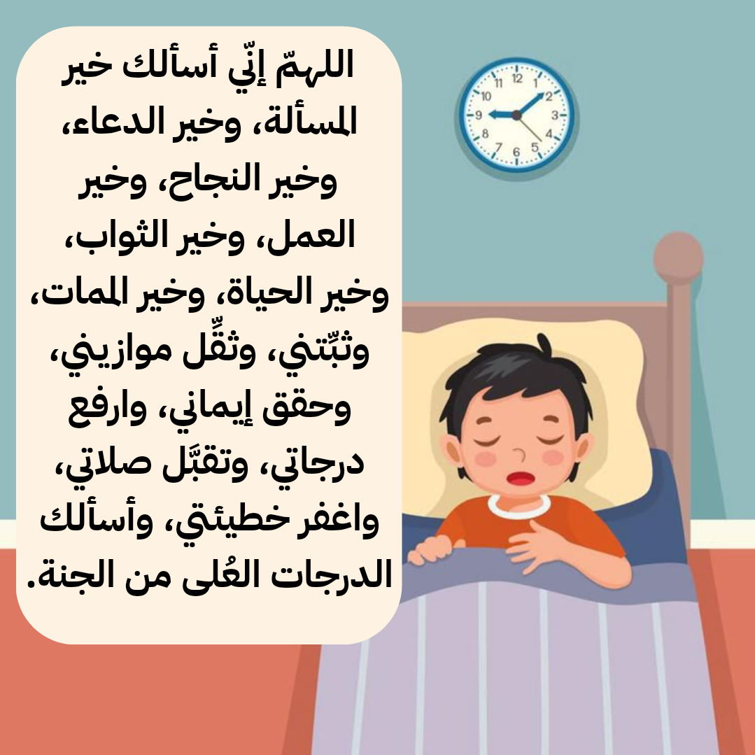 - اللَّهُمَّ إني أسألك فهم النبيين، وحفظ المرسلين، والملائكة المقربين، اللَّهُمَّ اجعل ألسنتنا عامرة بذكرك، وقلوبنا بخشيتك، وأسرارنا بطاعتك، إنك على كل شيء قدير، وحسبنا الله ونعم الوكيل.