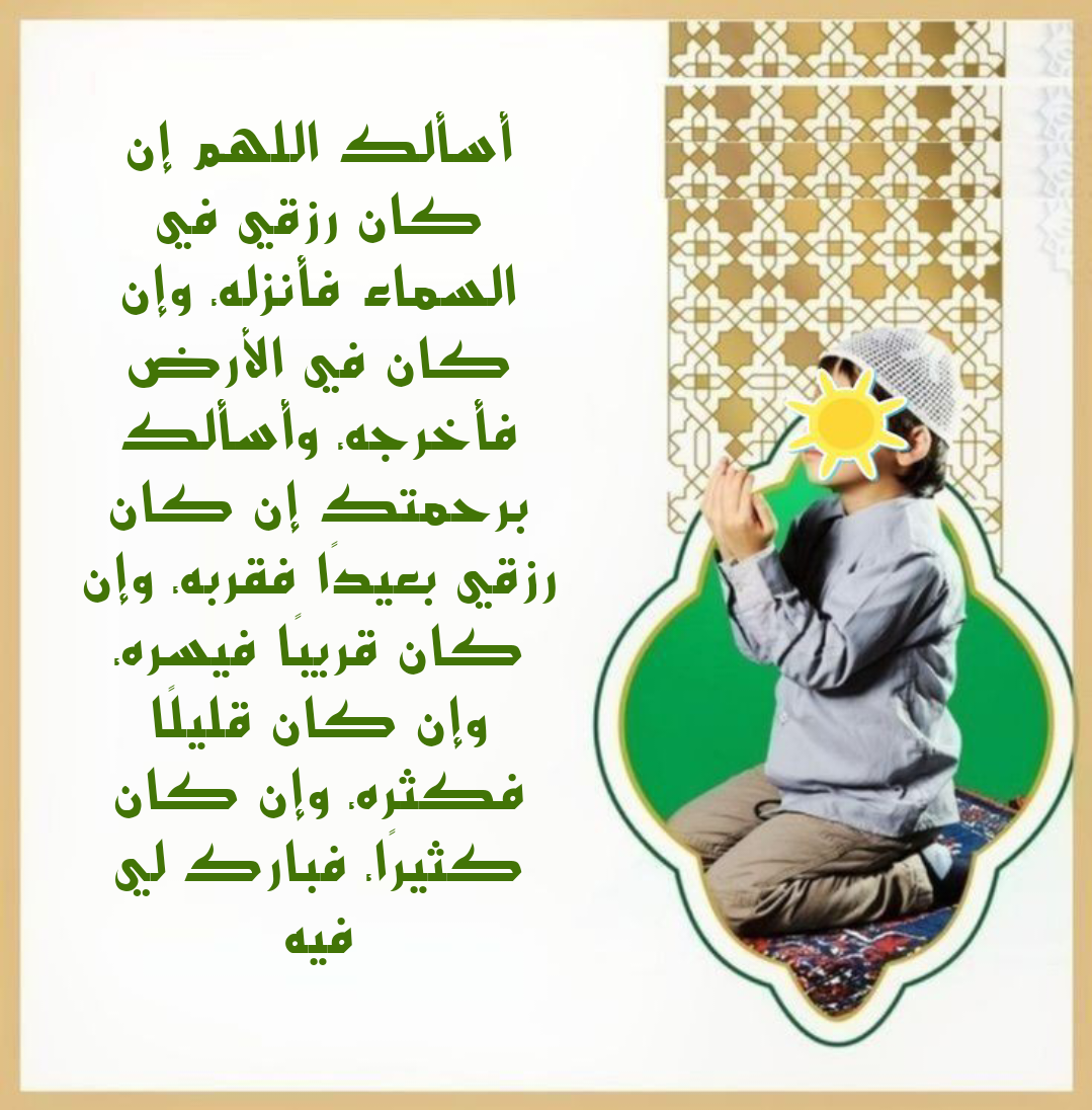 - يَا رَبِّ، افْتَحْ لَنَا أَبْوَابَ الْخَيْرِ وَالْبَرَكَةِ، وَامْلَأْ حَيَاتَنَا بِقَبُولِكَ وَرِضَاكَ، وَابْسُطْ لَنَا يَدَكَ بِالْعَطَاءِ وَارْحَمْنَا أَيْنَمَا كُنَّا يَا أَرْحَمَ الرَّاحِمِينَ.