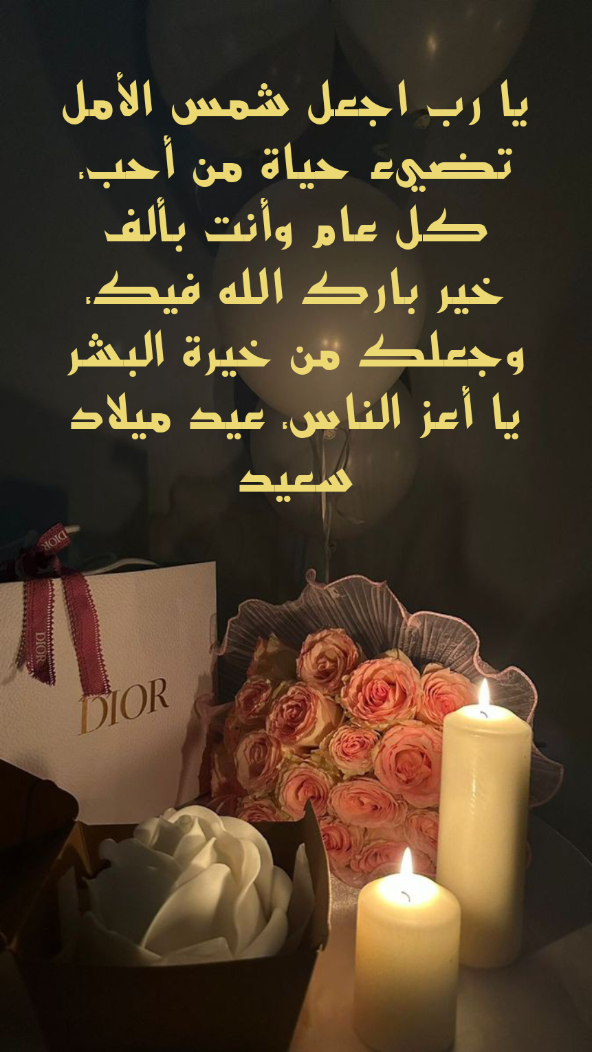 - “يَا رَبِّ، مَعَ بِدَايَةِ عَامٍ جَدِيدٍ مِنْ عُمْرِي، أَسْأَلُكَ أَنْ تَجْعَلَهُ عَامَ تَحْقِيقِ الأُمْنِيَاتِ، وَأَنْ تَحْفَظَنِي وَأَهْلِي وَأَحِبَّتِي بِعَيْنِكَ الَّتِي لاَ تَنَامُ.”.