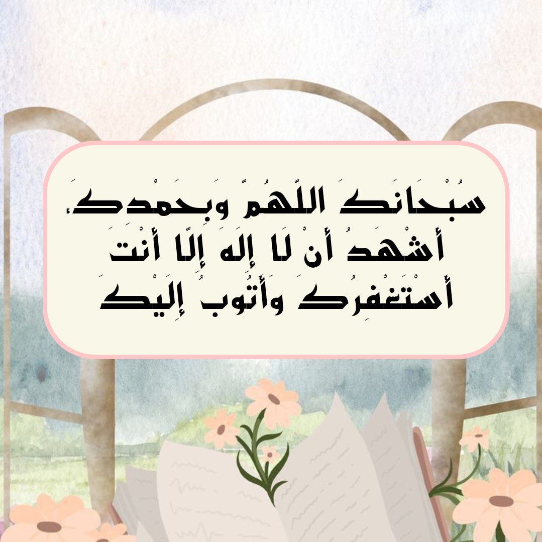 النص الصحيح هو: “سُبْحَانَكَ اللَّهُمَّ وَبِحَمْدِكَ، أَشْهَدُ أَنْ لاَ إِلَهَ إِلاَّ أَنْتَ، أَسْتَغْفِرُكَ وَأَتُوبُ إِلَيْكَ”، وهو ثابت في حديث صحيح عن النبي صلى الله عليه وسلم.