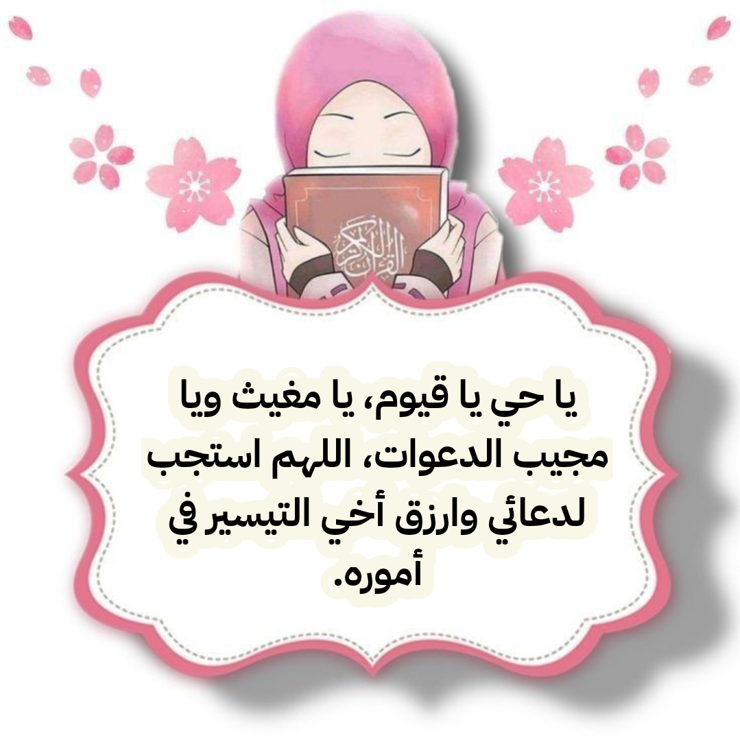 • اللَّهُمَّ إِنَّ أَخِي مِنْ أَحَبِّ النَّاسِ إِلَيَّ، فَأَسْعِدْ قَلْبَهُ بِمَا يَتَمَنَّى، وَوَفِّقْهُ لِكُلِّ خَيْرٍ، وَتَقَبَّلْ مِنْهُ صِيَامَهُ وَقِيَامَهُ وَصَالِحَ أَعْمَالِهِ.