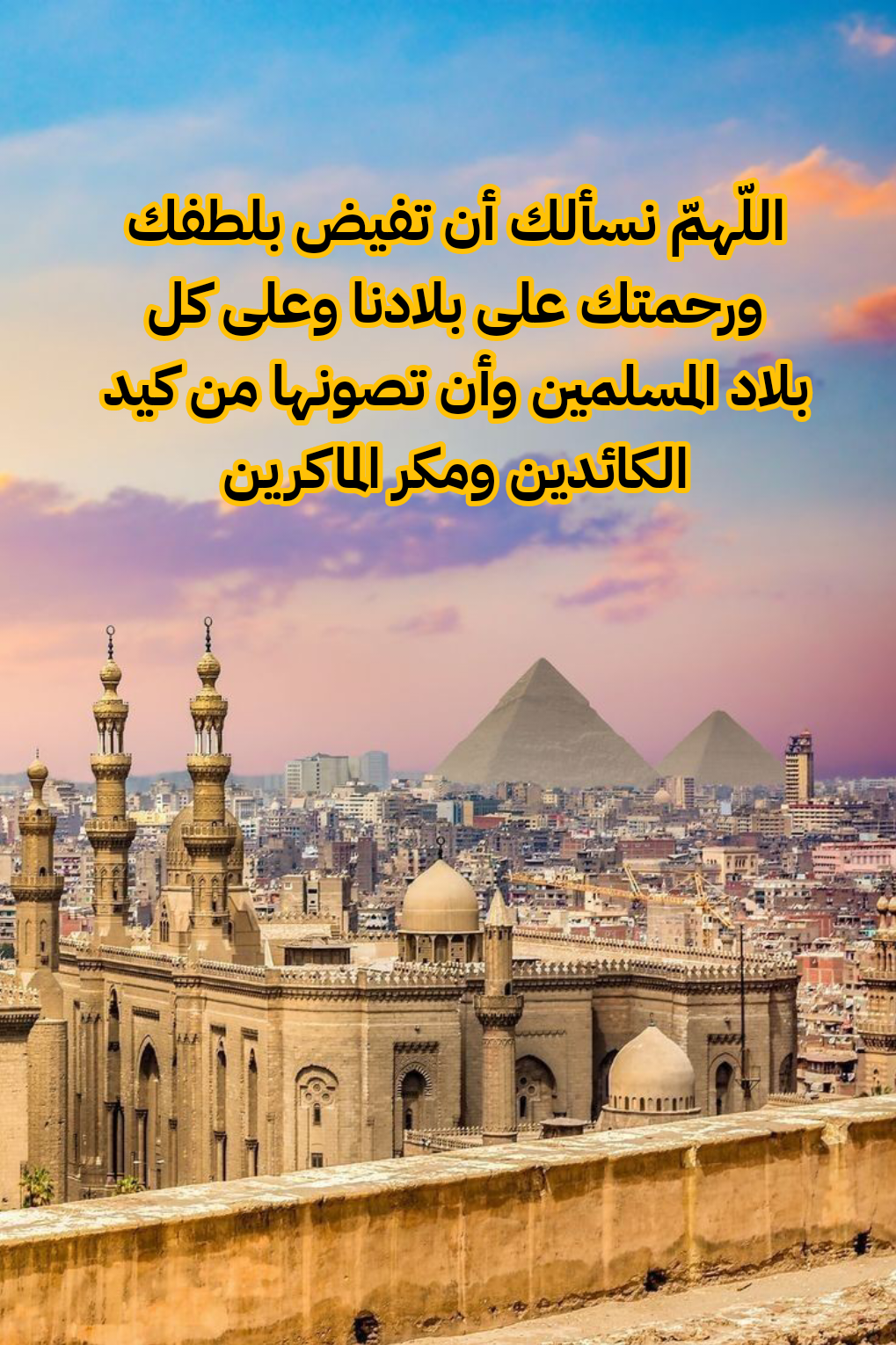 - اللَّهُمَّ احْفَظْ بِلَادَنَا وَبِلَادَ الْمُسْلِمِينَ مِنْ شَرِّ الْأَشْرَارِ، وَكَيْدِ الْفُجَّارِ، وَشَرِّ طَوَارِقِ اللَّيْلِ وَالنَّهَارِ.