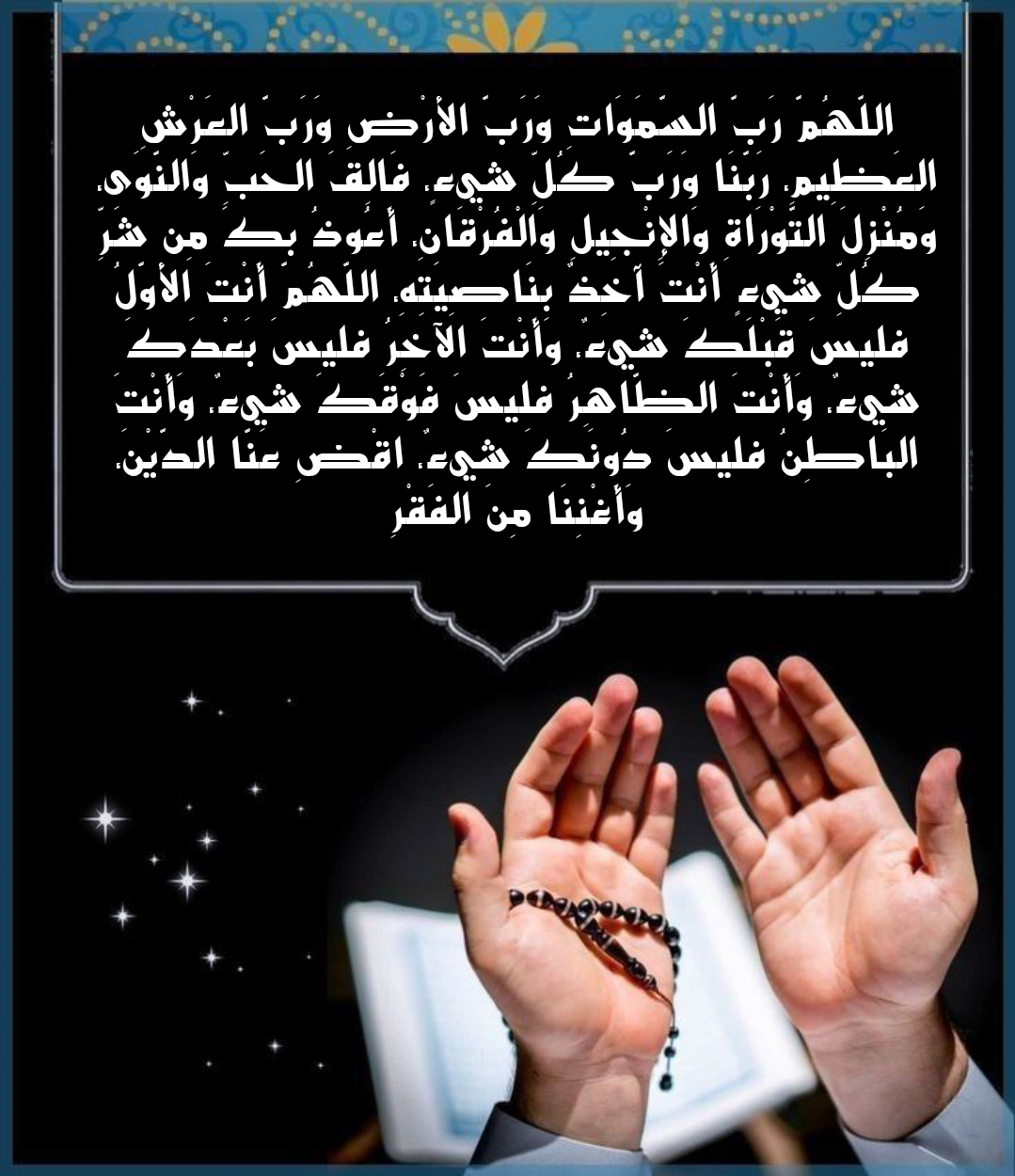 • اللهم اجعل أعمالنا خالصة لوجهك الكريم، وأدم علينا نعمة شكرك وذكرك، وثبت قلوبنا على طاعتك.