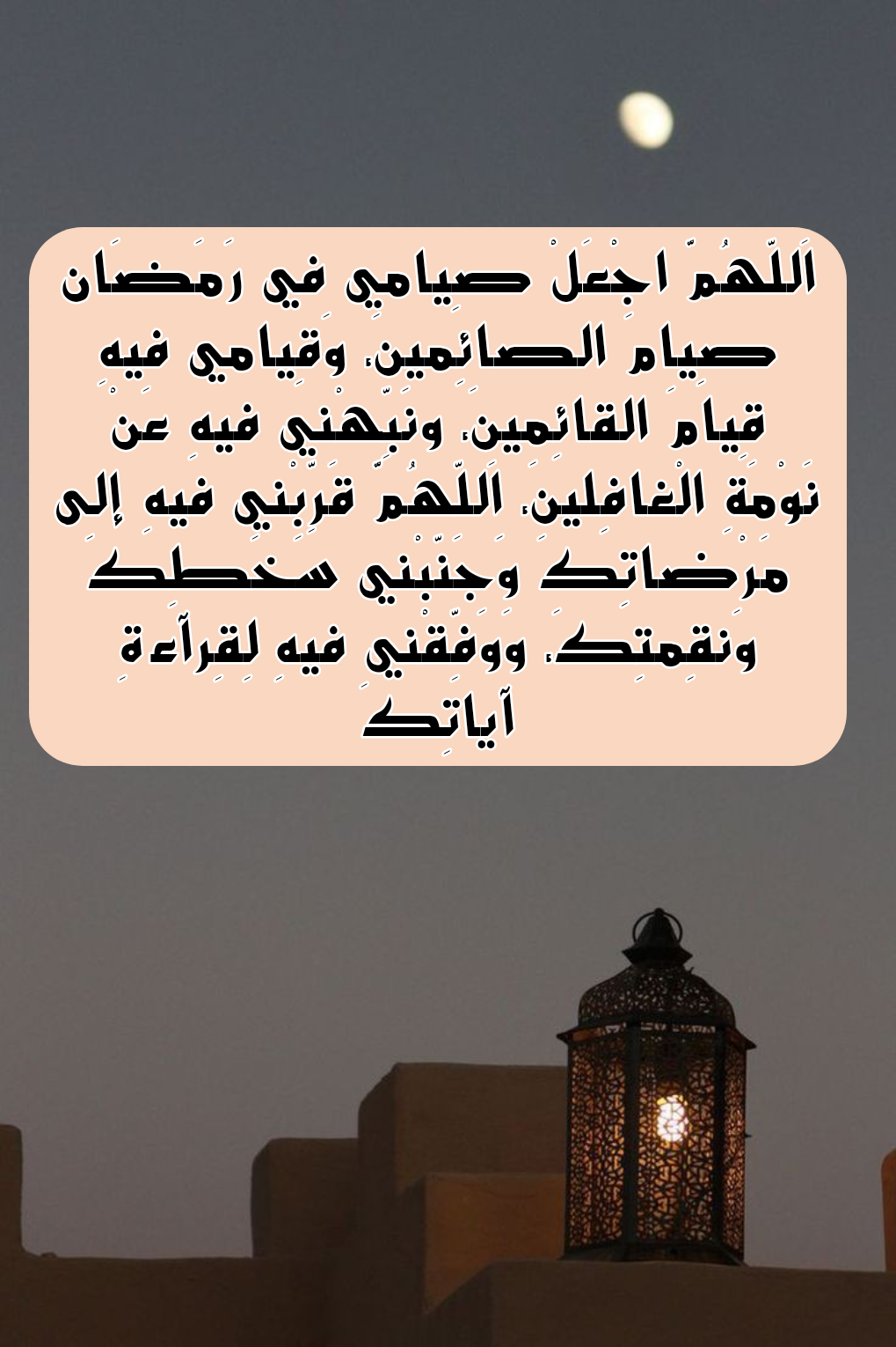 - “اللهم إني عقدت نيتي على صيام شهر رمضان المبارك خالصًا لوجهك الكريم، فاجعلني من المقبولين ويسر لي الصيام والقيام.”.