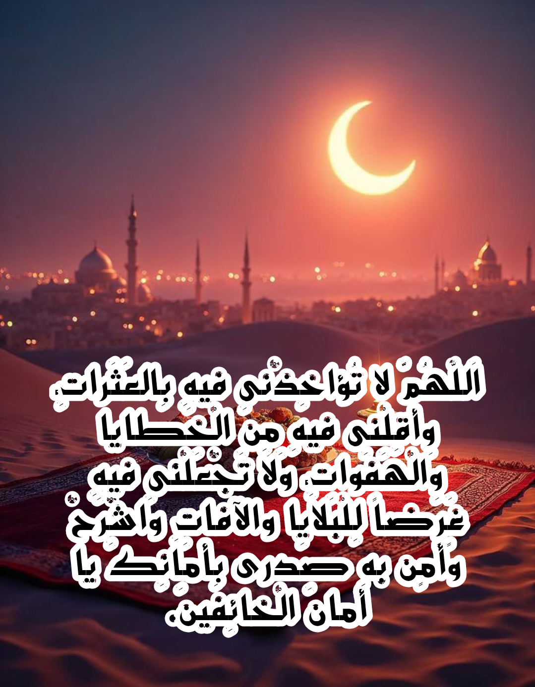 “اللَّهُمَّ أَهِلَّهُ علَيْنَا بِالأَمْنِ والإِيمَانِ، وَالسَّلامَةِ والإِسْلامِ، رَبِّي ورَبُّكَ اللَّه”.