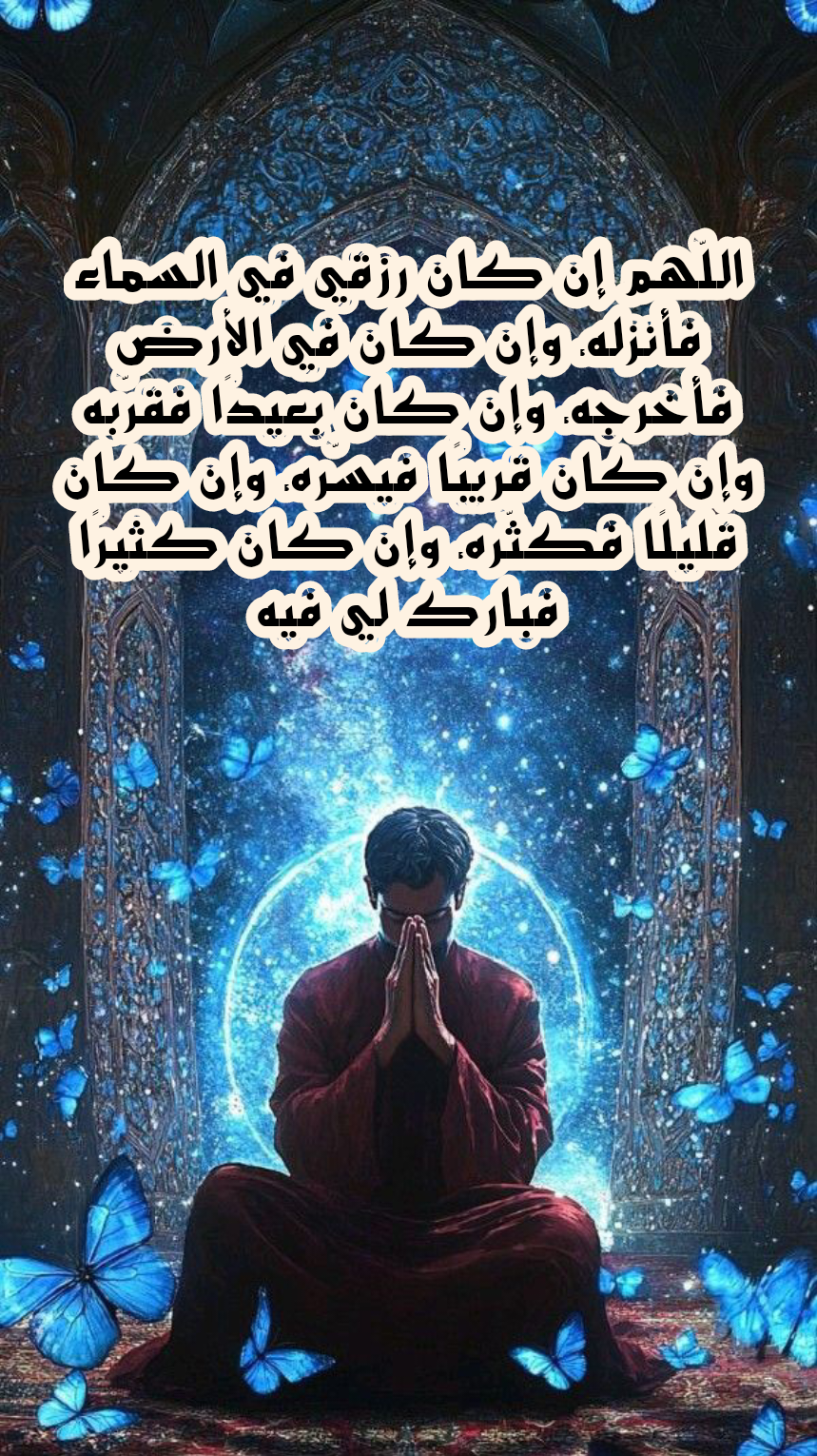 - رَبِّ، إِنِّي لَا أَعْلَمُ مِنْ أَيْنَ يَأْتِي رِزْقِي، وَلَكِنِّي أَعْلَمُ أَنَّ عِلْمَهُ عِنْدَكَ، وَأَسْبَابَهُ بِيَدِكَ، وَأَنْتَ الَّذِي تُقَسِّمُهُ بِلُطْفِكَ وَتُسَبِّبُهُ بِرَحْمَتِكَ، اللَّهُمَّ فَصَلِّ عَلَى مُحَمَّدٍ وَآلِهِ، وَاجْعَلْ يَا رَبِّ رِزْقَكَ لِي وَاسِعًا، وَمَطْلَبَهُ سَهْلًا، وَمَأْخَذَهُ قَرِيبًا، وَلَا تُعَنِّنِي بِطَلَبِ مَا لَمْ تُقَدِّرْ لِي فِيهِ رِزْقًا، فَإِنَّكَ غَنِيٌّ عَنْ عَذَابِي وَأَنَا فَقِيرٌ إِلَى رَحْمَتِكَ.