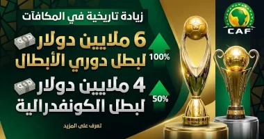 أعلن الاتحاد الإفريقي لكرة القدم (CAF) رسمياً اليوم الاثنين 9 مارس 2026، عن اعتماد زيادة مالية ضخمة لجوائز مسابقتي دوري أبطال إفريقيا وكأس الكونفدرالية، وتهدف هذه الخطوة، التي تدخل حيز التنفيذ في النسخة الحالية لموسم 2025-2026، إلى تعزيز الاستدامة المالية للأندية القارية ومواكبة المعايير العالمية في المكافآت الرياضية، بضخ مبالغ إضافية تصل إلى مليوني دولار لكل بطل في المسابقتين.