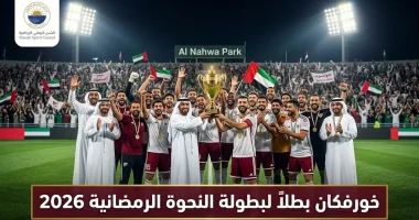 شهدت منطقة النحوة التابعة لإمارة الشارقة، مساء أمس الأحد 8 مارس 2026، ختاماً استثنائياً لفعاليات “بطولة النحوة الرمضانية السابعة لكرة القدم”، حيث نجح فريق خورفكان في حسم اللقب لصالحه بعد مواجهة قوية اتسمت بالندية العالية أمام فريق النحوة، ليعلن نفسه بطلاً للنسخة الحالية من البطولة التي تقام تزامناً مع شهر رمضان المبارك لعام 1447 هـ.