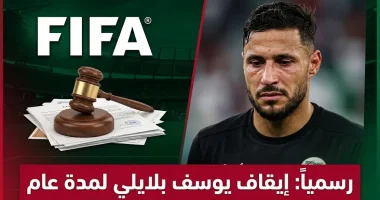 أصدر الاتحاد الدولي لكرة القدم (فيفا)، اليوم الجمعة 6 مارس 2026، قراراً رسمياً يقضي بإيقاف النجم الجزائري يوسف بلايلي، صانع ألعاب نادي الترجي التونسي ولاعب الأهلي السعودي السابق، عن ممارسة أي نشاط رياضي لمدة عام كامل، يأتي هذا القرار على خلفية نزاع قانوني طويل مع ناديه الأسبق أجاكسيو الفرنسي، مما يضع مسيرة اللاعب الاحترافية على المحك، خاصة في ظل معاناته الحالية من إصابة طويلة الأمد.