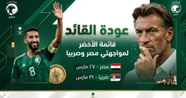 | موعد مباراة السعودية وصربيا | 31 مارس 2026 – بلغراد |