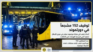 أعلنت شرطة مدينة دورتموند الألمانية، أمس الأحد (22 مارس 2026)، عن توقيف 152 فرداً من مشجعي كرة القدم، على خلفية…