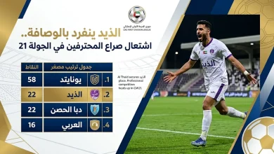 جدول ترتيب دوري الدرجة الأولى الإماراتي 2026 بعد نتائج مباريات الجولة 21 وصعود الذيد للوصافة