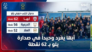 جدول ترتيب دوري يلو 2026 بعد فوز أبها على الجبيل في الجولة 26 واكتمال المباريات المؤجلة