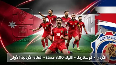 القنوات الناقلة لمباراة الأردن وكوستاريكا اليوم الجمعة 27-3-2026 والتردد الرسمي