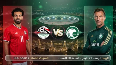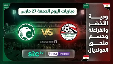 القنوات الناقلة لمباراة السعودية ضد مصر اليوم الجمعة 27-3-2026 والترددات الرسمية
