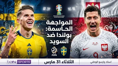 موعد مباراة بولندا والسويد الثلاثاء 31-3-2026 في نهائي الملحق الأوروبي المؤهل لكأس العالم