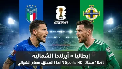 القنوات الناقلة لمباراة إيطاليا وأيرلندا الشمالية الخميس 26-3-2026 والمعلق والتردد