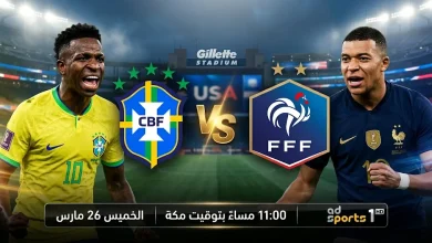 القنوات الناقلة لمباراة البرازيل وفرنسا الودية غداً الخميس 26-3-2026 ومعلق اللقاء