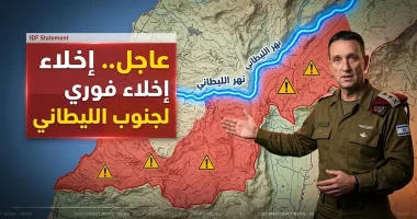 تحذير عاجل ونهائي من الجيش الإسرائيلي لسكان جنوب نهر الليطاني لمغادرة منازلهم فوراً والتوجه شمالاً