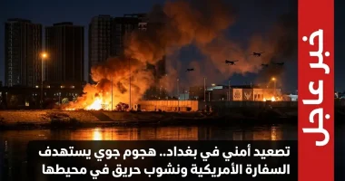 شهدت العاصمة العراقية بغداد فجر الأربعاء 18 مارس 2026 تصعيداً أمنياً هو الأعنف من نوعه، حيث تعرض مقر السفارة الأمريكية في “المنطقة الخضراء” لسلسلة هجمات منسقة بطائرات مسيرة وصواريخ، مما أدى إلى اندلاع حريق في محيط المجمع الدبلوماسي وتصاعد أعمدة الدخان التي غطت سماء المنطقة.