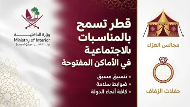 وزارة الداخلية القطرية تسمح بإقامة حفلات الزواج ومجالس العزاء في الأماكن المفتوحة بكافة أنحاء الدولة