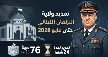 أقرت الهيئة العامة لمجلس النواب اللبناني، في جلسة برلمانية مصيرية عُقدت اليوم الاثنين 9 مارس 2026م، تمديد ولاية المجلس الحالية لمدة سنتين إضافيتين، وذلك في ظل تصاعد التحديات الأمنية والميدانية التي تواجه البلاد.
