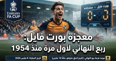 فجر فريق بورت فايل، الناشط في دوري الدرجة الثالثة الإنجليزي، مفاجأة من العيار الثقيل بمواصلة مغامرته التاريخية في بطولة كأس الاتحاد الإنجليزي لعام 2026، إثر تغلبه على نظيره سندرلاند بهدف دون رد، في اللقاء الذي أقيم اليوم الأحد 8 مارس 2026، ليحجز مقعداً في الدور ربع النهائي في إنجاز غير مسبوق للنادي منذ سبعة عقود.