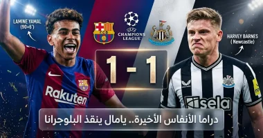 خطف نادي برشلونة الإسباني تعادلاً درامياً في الأنفاس الأخيرة من مباراته أمام نيوكاسل يونايتد الإنجليزي بنتيجة (1-1)، في اللقاء الذي أقيم مساء أمس الثلاثاء ضمن منافسات ذهاب دور الـ 16 من بطولة دوري أبطال أوروبا لعام 2026 (1447 هـ)، ليؤجل حسم التأهل إلى موقعة الإياب في إنجلترا.