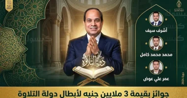 شهدت احتفالية ليلة القدر بمركز المنارة للمؤتمرات الدولية، اليوم الاثنين 16 مارس 2026 (الموافق 27 رمضان 1447 هـ)، تكريماً خاصاً من الرئيس المصري عبد الفتاح السيسي للفائزين في مسابقة “دولة التلاوة”، وتأتي هذه الخطوة تتويجاً للموسم الأول من البرنامج الذي أطلقته وزارة الأوقاف المصرية، بهدف رعاية المواهب القرآنية الشابة وإبراز جماليات الترتيل والتجويد في مدرسة التلاوة المصرية العريقة.