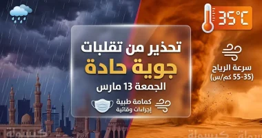 تقلبات جوية حادة في مصر اليوم الجمعة 13 مارس وارتفاع الحرارة لـ 35 درجة قبل عودة الأمطار والأجواء الشتوية