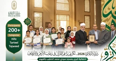 في مشهد إيماني مهيب تزامن مع أواخر شهر رمضان المبارك لعام 1447 هجرياً، احتفت مشيخة الأزهر الشريف ووزارة الأوقاف المصرية، أمس السبت 14 مارس 2026، بتكريم عشرات الأطفال والنشء من حفظة كتاب الله في محافظة الفيوم، أقيمت الاحتفالية في رحاب مسجد سيدي محمد الخطيب بقرية “مناشي الخطيب”، بحضور قيادات دينية وتنفيذية رفيعة المستوى، لتشجيع الجيل الجديد على التمسك بالقيم الأخلاقية والمنهج الأزهري الوسطي.