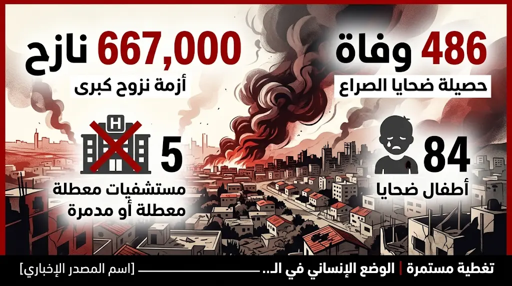 أرقام صادمة لضحايا القصف في لبنان وتخطي عدد النازحين حاجز 667 ألف شخص مع تدهور الوضع الإنساني