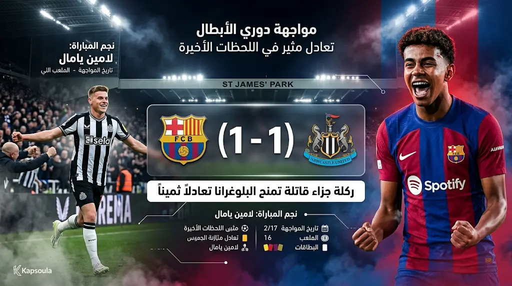 لامين يامال ينقذ برشلونة من الهزيمة أمام نيوكاسل بتعادل قاتل في الوقت بدل الضائع