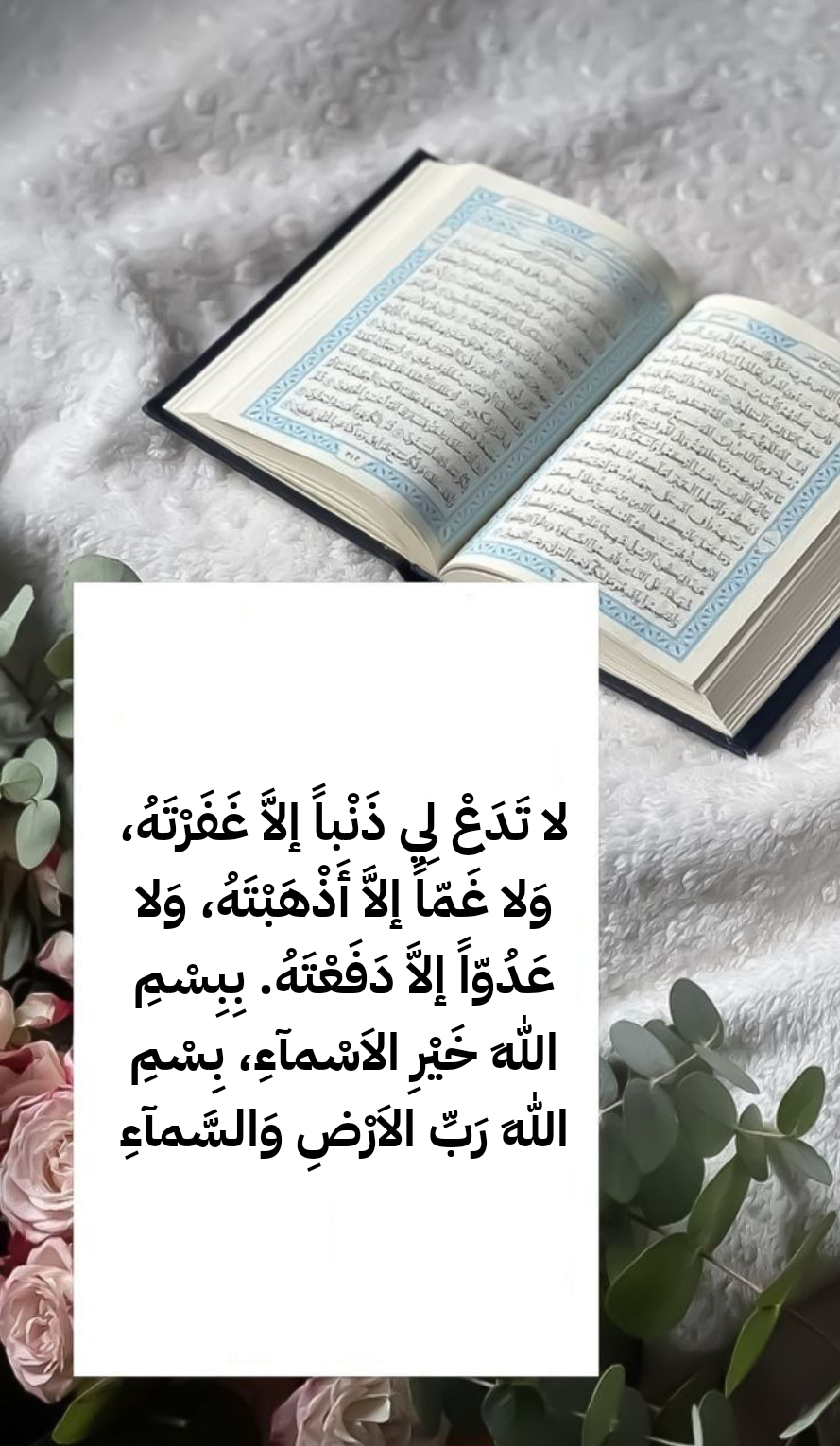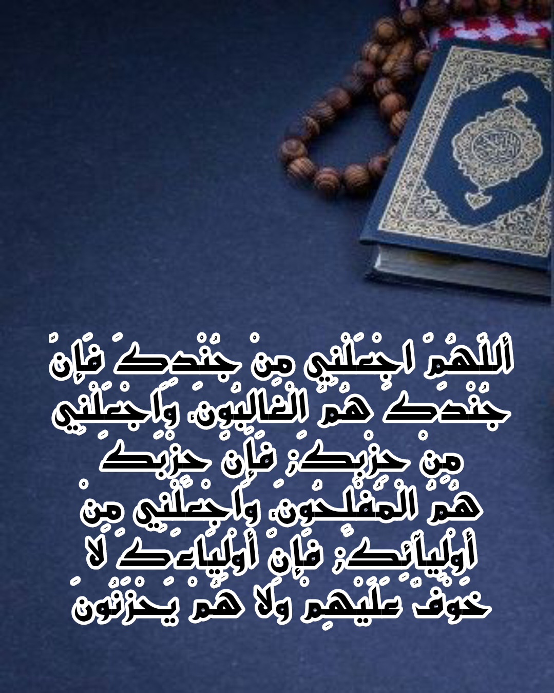 - “اللَّهُمَّ يَا جَبَّارَ الْقُلُوبِ، اجْعَلْ قُلُوبَنَا مُتَعَلِّقَةً بِكِتَابِكَ، وَافْتَحْ لَنَا كُلَّ بَابٍ مُغْلَقٍ، وَاغْمُرْنَا بِرَحْمَتِكَ، وَارْزُقْنَا مِنْ وَاسِعِ فَضْلِكَ، وَوَفِّقْنَا لِطَاعَتِكَ، وَاغْفِرْ لَنَا زَلَّاتِنَا، وَأَدْخِلْنَا جَنَّاتِ النَّعِيمِ.”.