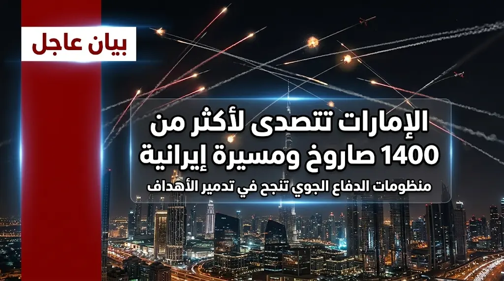 الإمارات تتصدى لهجوم إيراني واسع النطاق بأكثر من 1400 صاروخ ومسيرة وتؤكد حقها في الدفاع المشروع عن النفس