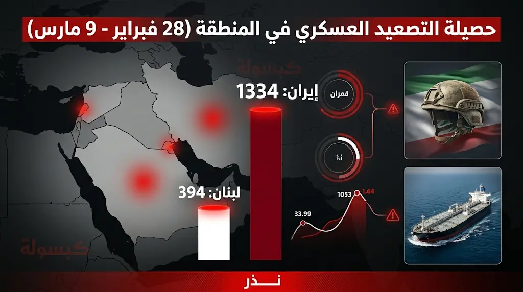 ملخص حصيلة الضحايا والقتلى (28 فبراير – 9 مارس 2026)
