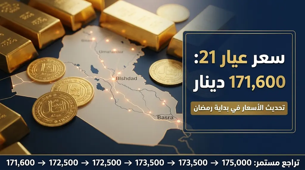 شهدت الأسواق العراقية مع إشراقة أول أيام شهر رمضان المبارك، اليوم الجمعة 20 مارس 2026، تراجعاً في أسعار الذهب المحلي، حيث سجل غرام الذهب عيار 21 (الأكثر طلباً في محلات الصاغة) نحو 171,600 دينار عراقي، ما يعادل 131.89 دولار أمريكي، يأتي هذا الانخفاض المحلي رغم محاولات الذهب العالمي للتعافي، مدفوعاً بتقلبات حادة في مؤشر الدولار وقرارات الفيدرالي الأمريكي الأخيرة.