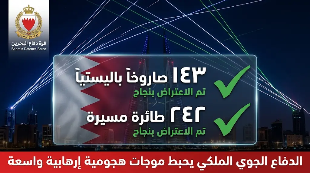 قوة دفاع البحرين تعلن إحباط هجوم إرهابي واسع النطاق وتدمير 143 صاروخاً باليستياً و242 طائرة مسيرة انتحارية