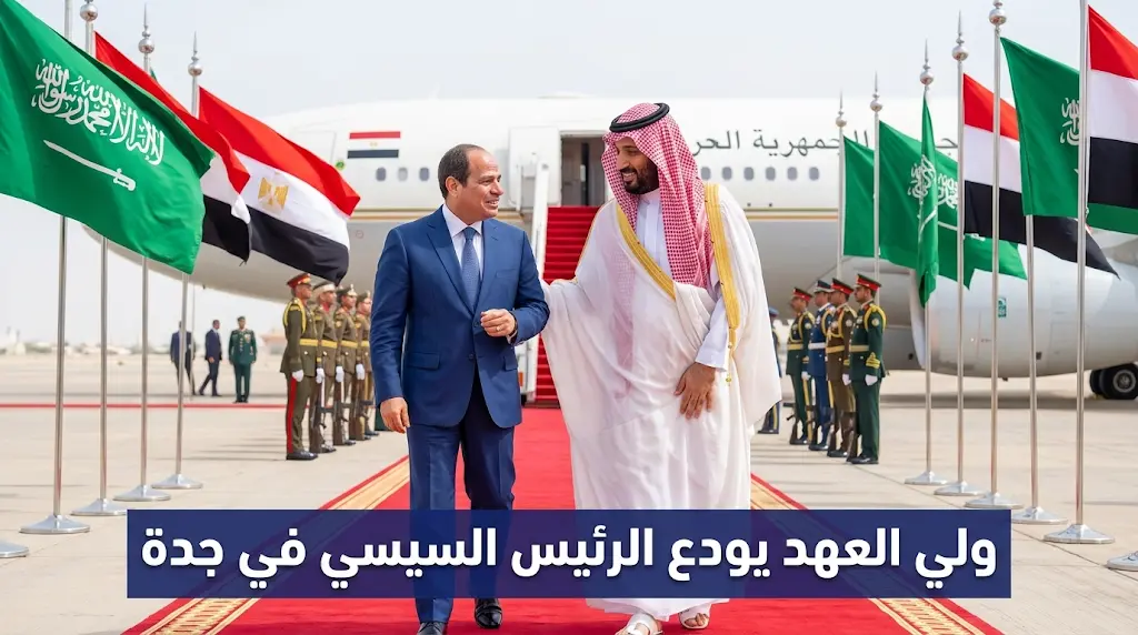 الأمير محمد بن سلمان يتقدم مودعي الرئيس عبدالفتاح السيسي بمطار الملك عبدالعزيز في ختام زيارته للسعودية